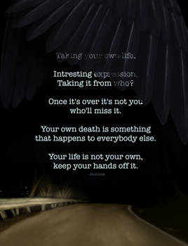 Taking Your Own Life Interesting Expression Taking It From Who Once It S Over It S Not You Wholl Miss It Your Own Death Is Sonethin That Happens To Everybody Else Your Lifelis