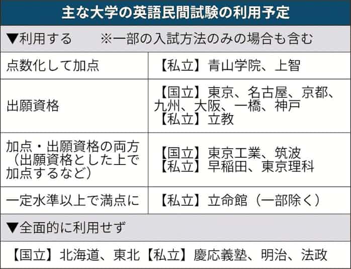 英語民間試験4割使わず 日本経済新聞