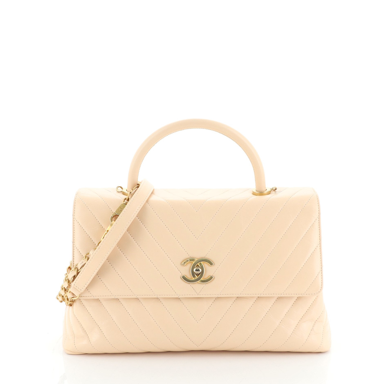 Chanel Chanel Chevron Medium Coco Handle Bag Handbags Leather Beige Ref Joli Closet